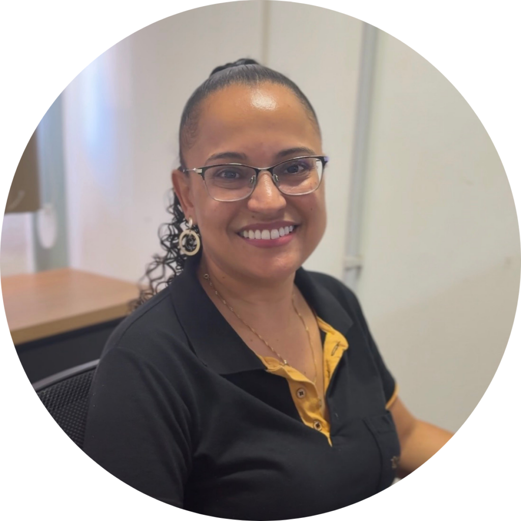 “Eu trabalho há 15 anos na Funarbe. Entrei em 2010 como estagiária, na recepção da unidade do Supermercado Escola. Um ano depois, fui contratada como auxiliar de faturamento e, ao longo do tempo, fui crescendo até chegar à posição de coordenadora administrativo-financeira.